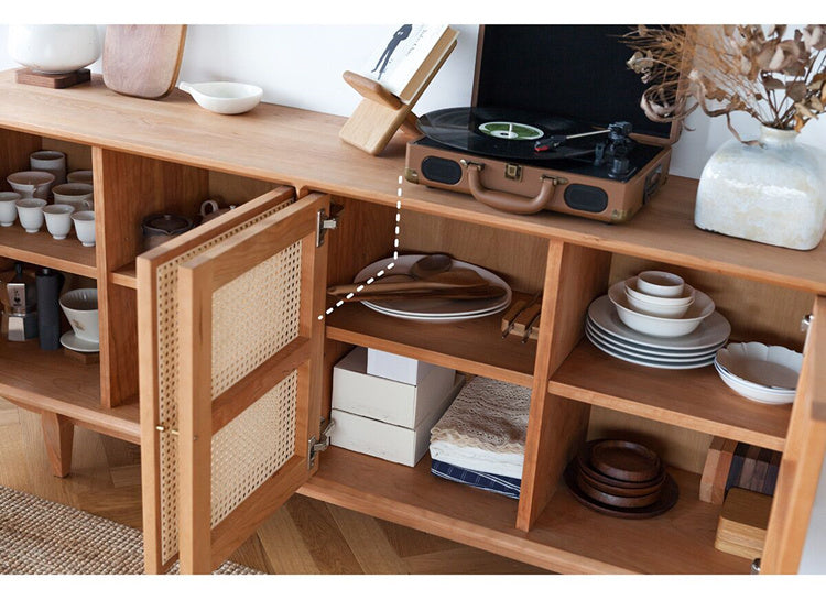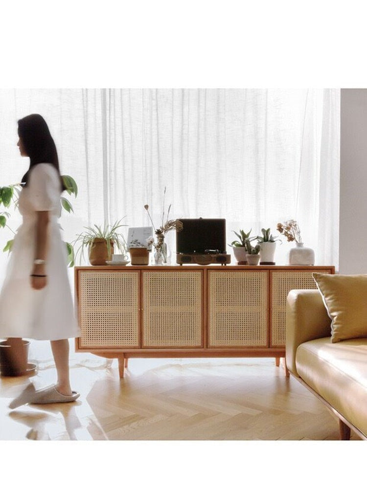 SADIE Rattan Buffet Sideboard Solid Wood Coastal Island ( 2 Color 2 Size ) Solid wood rattan sideboard Nordic modern minimalist multi-functional with Japanese style clean line storage cabinet. Suitable as well a cocktail , liquer, wine cabinet in the dining room, for cloth, wearables in the bedroom or for led lcd tv as a entertainment unit in the living room